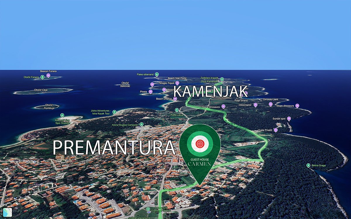 Guest House Carmen is located in the charming village of Premantura at the southern tip of the Istrian peninsula. The village is well known for its relaxed atmosphere, excellent local restaurants, and close proximity to Cape Kamenjak Nature Park.